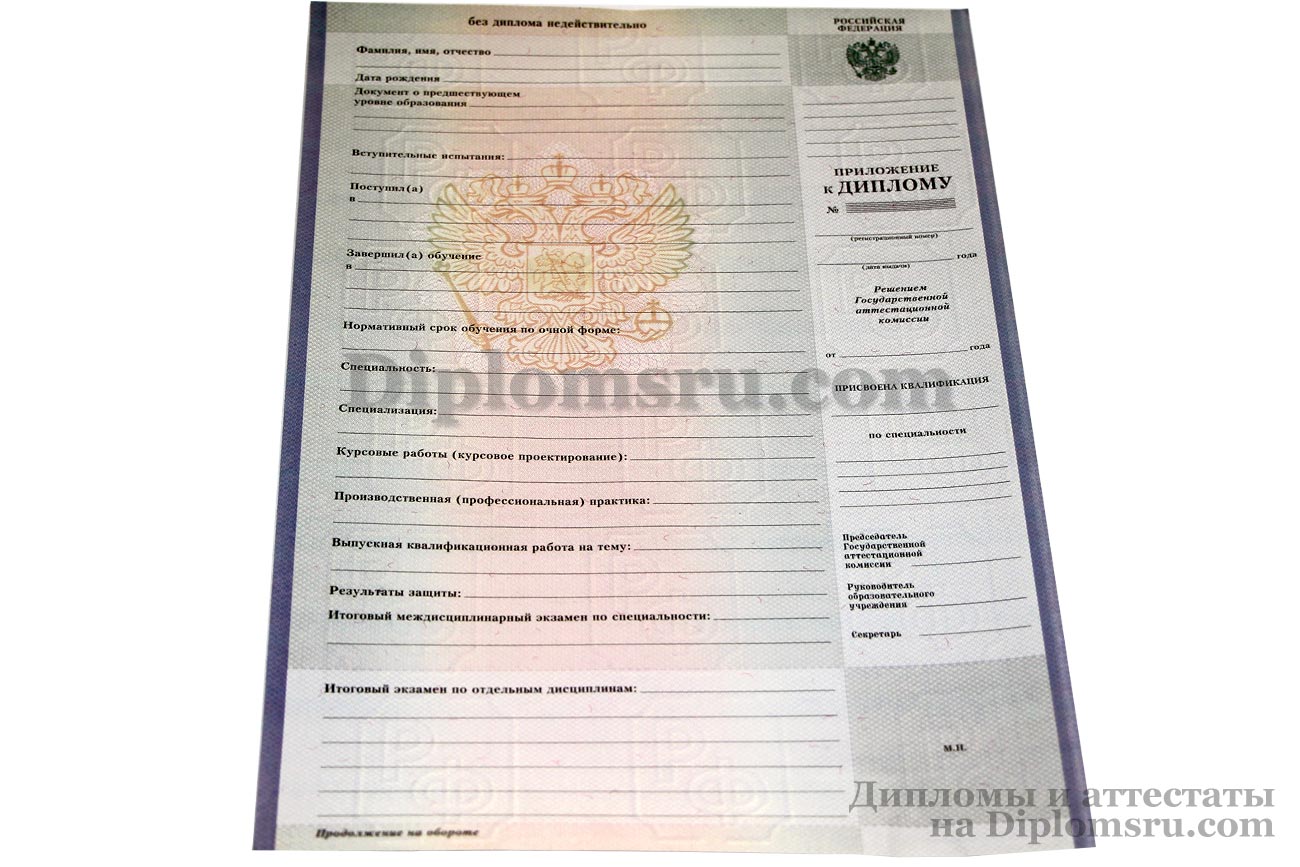 У нас Вы можете купить диплом среднего профессионального образования с окончанием техникума или колледжа в 2007, 2008, 2009, 2010 годах. Заполняется профессионалами, учебная программа и название специальности соответствуют данному периоду, заверяется печатью техникума (колледжа), подписями председателя Госкомиссии и директора ССУЗа. Диплом выглядит так, как в учебном заведении!