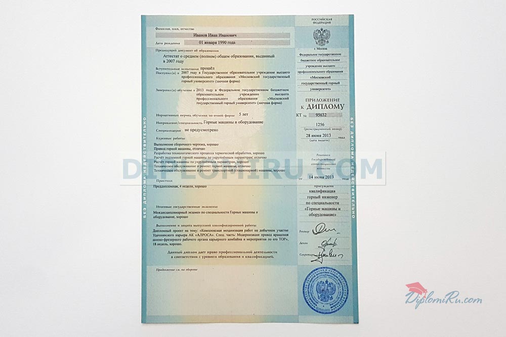 Приложение к диплому ВУЗа при покупке отдельно до 2013 года |